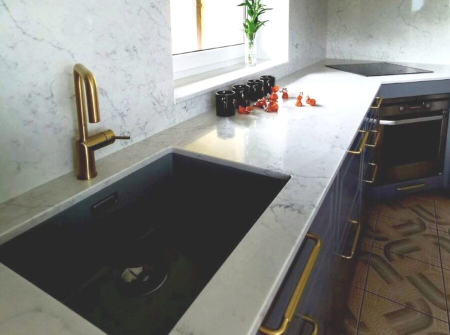Jag köpte en vit komposit bänkskiva.